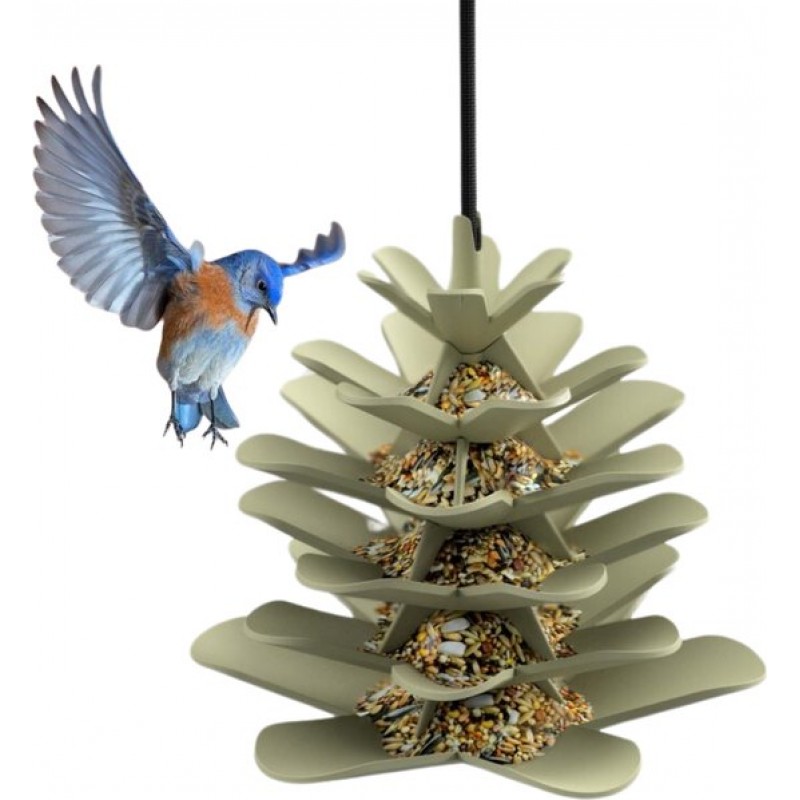 De voersilo Jesse is 100% gerecycled. Het unieke design van deze dennenappel geeft je de mogelijkheid om strooivoer aan te bieden aan de vogels in jouw tuin.