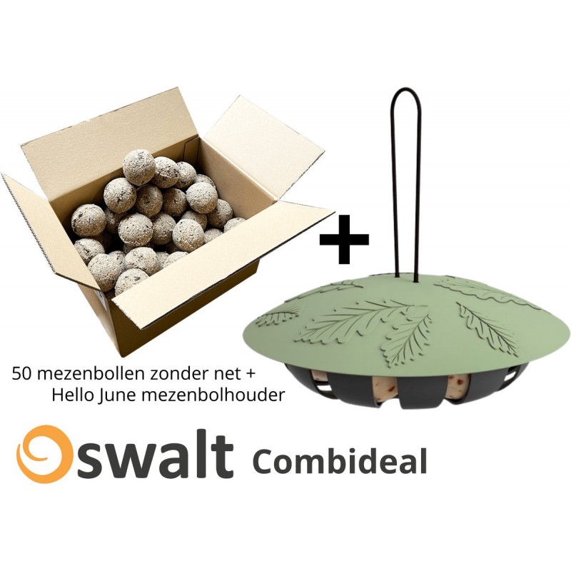 Inhoud: 1x Singing Friend Hello June mezenbolhouder, 50 stuks mezenbol zonder net.